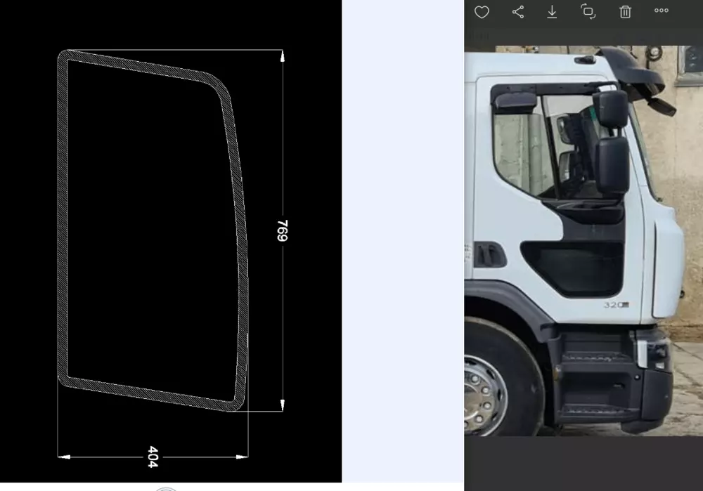 Виготовлення скла на кабіну Рено преміум 2009